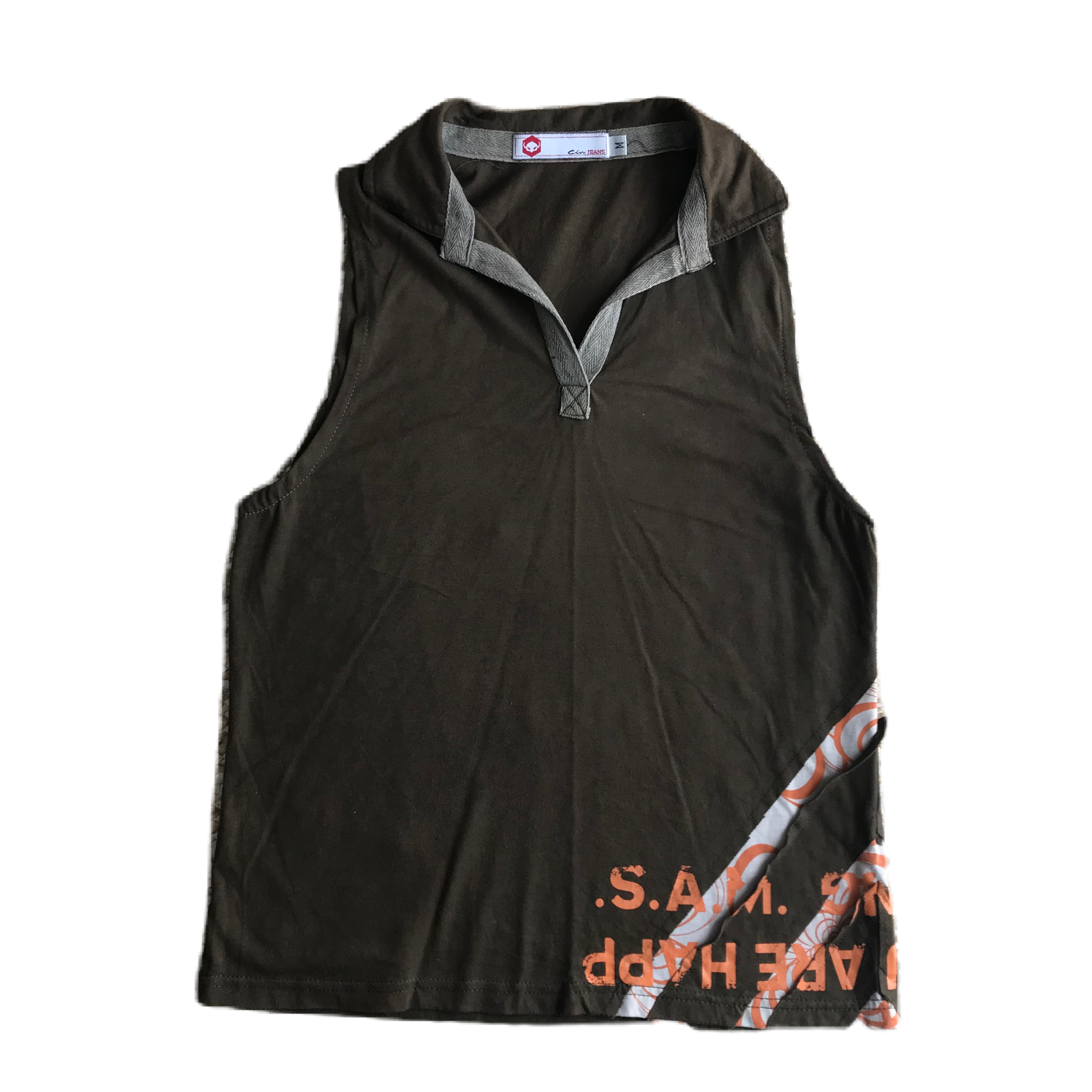 Khaki & Orange Lettering Graphic Tank Top