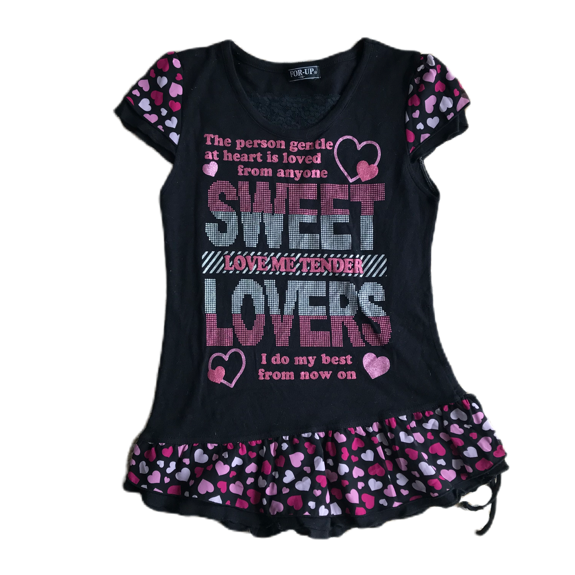Black Pink & Silver Rhinestone Glitter Lettering Top (130)